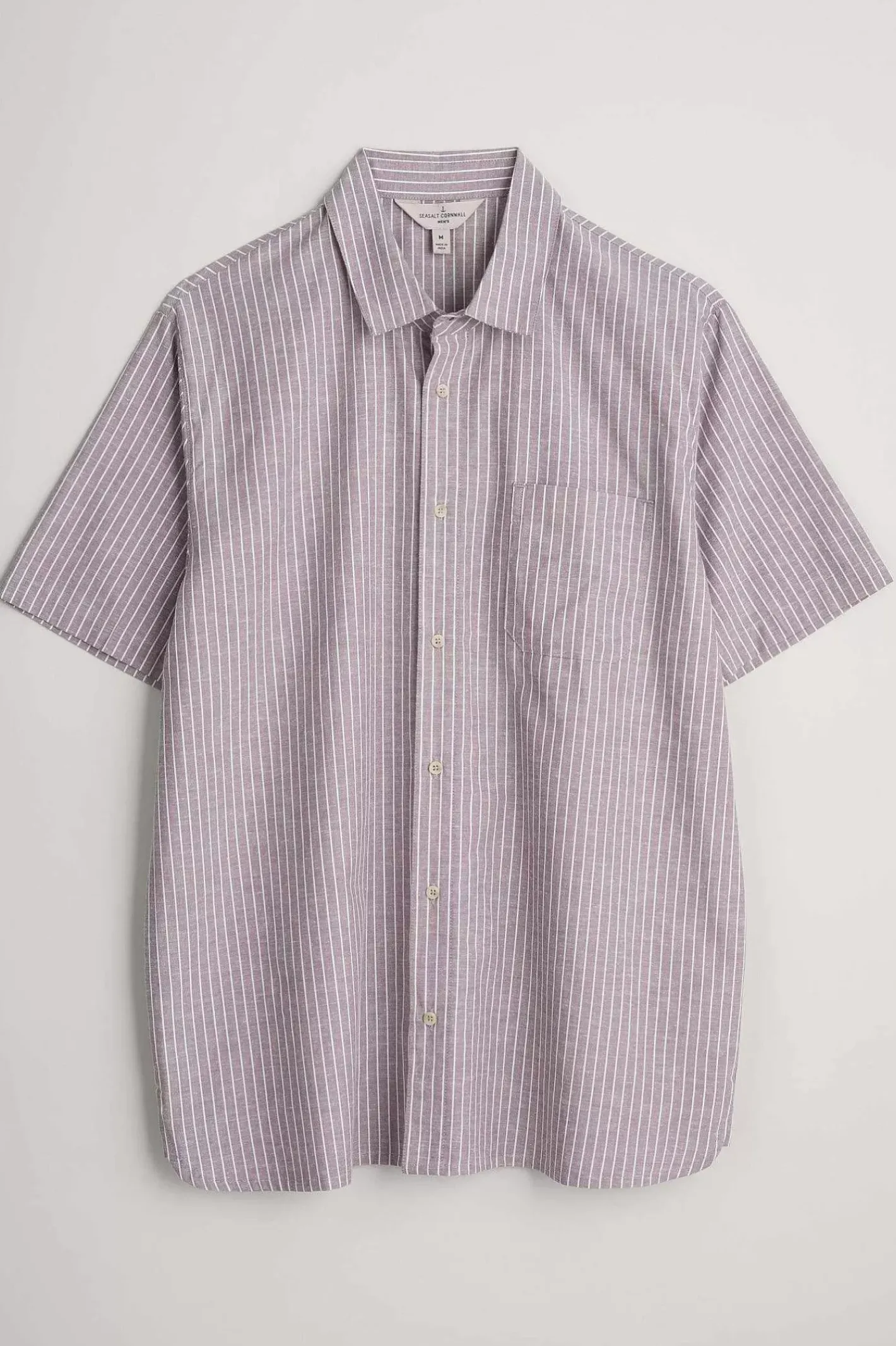A Short-Sleeved Shirt In Breathable Organic Cotton, With A Simple Rhythm Of Vertical Pinstripes In Softly Contrasting Colours Inspired By The Coast. Wear Buttoned Up Or Loose Over A Plain T-Shirt For Easy Summer Style.