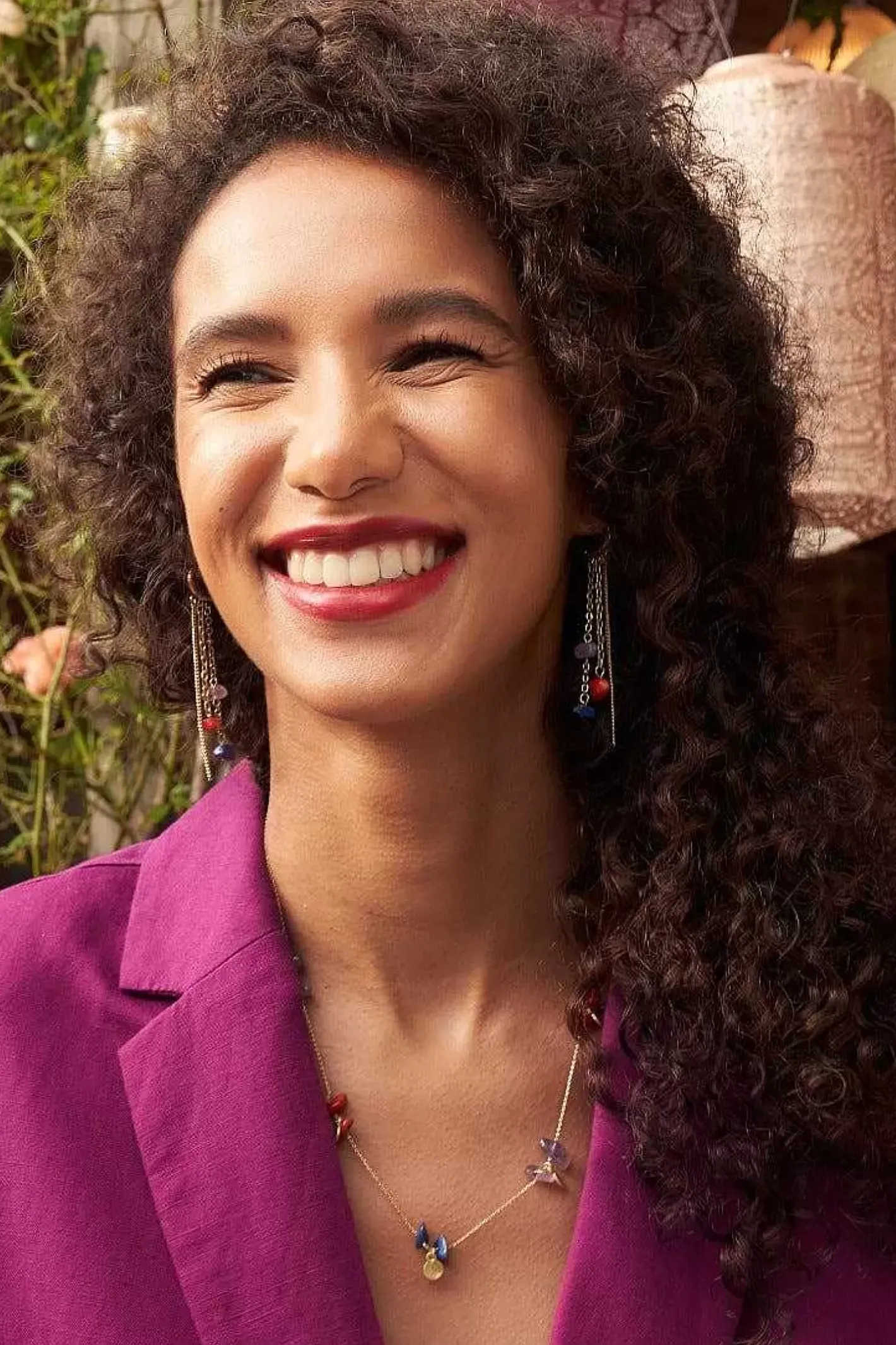 A Playful, Elegant Piece With Plenty Of Movement. Delicate Hoop Earrings With Stones Of Varying Shapes And Shades, Suspended From Fine Gold Plated Chains. Wear As A Simple Statement Or Pair With Our Arc Necklace.