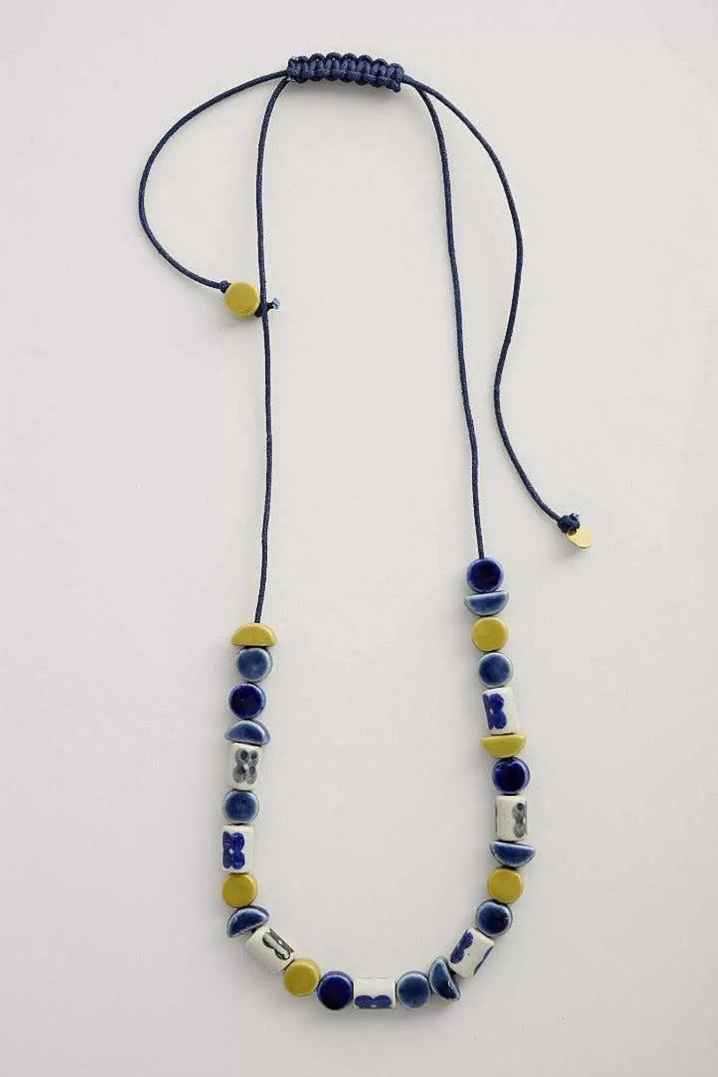 A Pattern Of Colourful Beads, With Floral Stamps, Round And Semi-Circular Shapes. Adjust The Cotton Cord To Find Your Perfect Length. The Perfect Partner To Our Collan Earrings, We Also Love This Style Layered Over Sailor Stripes That Pick Out One Of The Rich Colours.