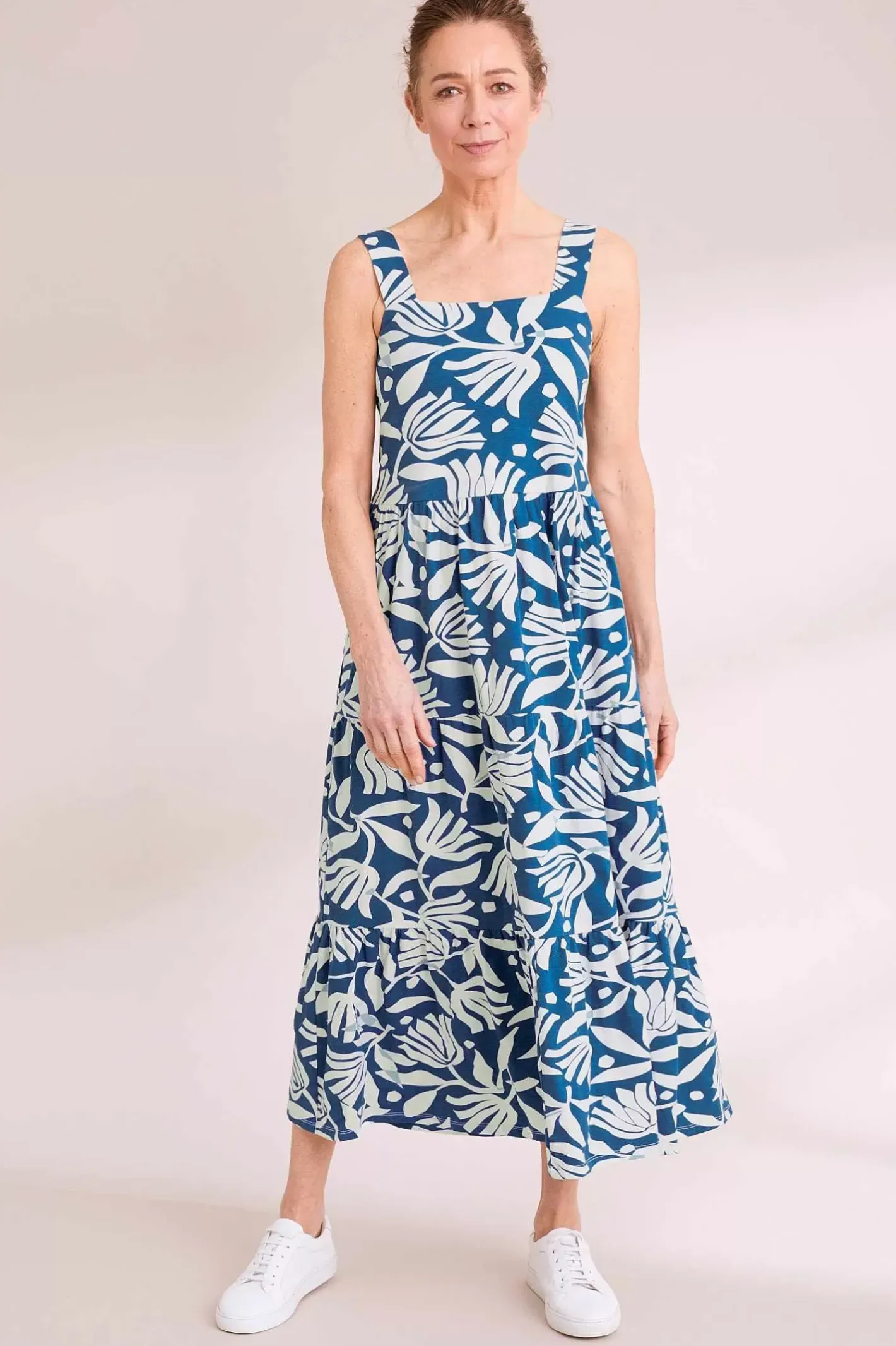 A New Summer Favourite To Take You From The Beach To The Bar All Season Long. Made From Soft Organic Cotton With A Touch Of Stretch, We’Ve Given The Deep Water Dress A Flattering Square Neck With Wide Straps. Elasticated Smocking On The Back Creates Extra Space For A Comfortable Fit, And Gathered Tiers In The Ankle-Length Skirt Give The Dress A Gentle, Floaty Movement.