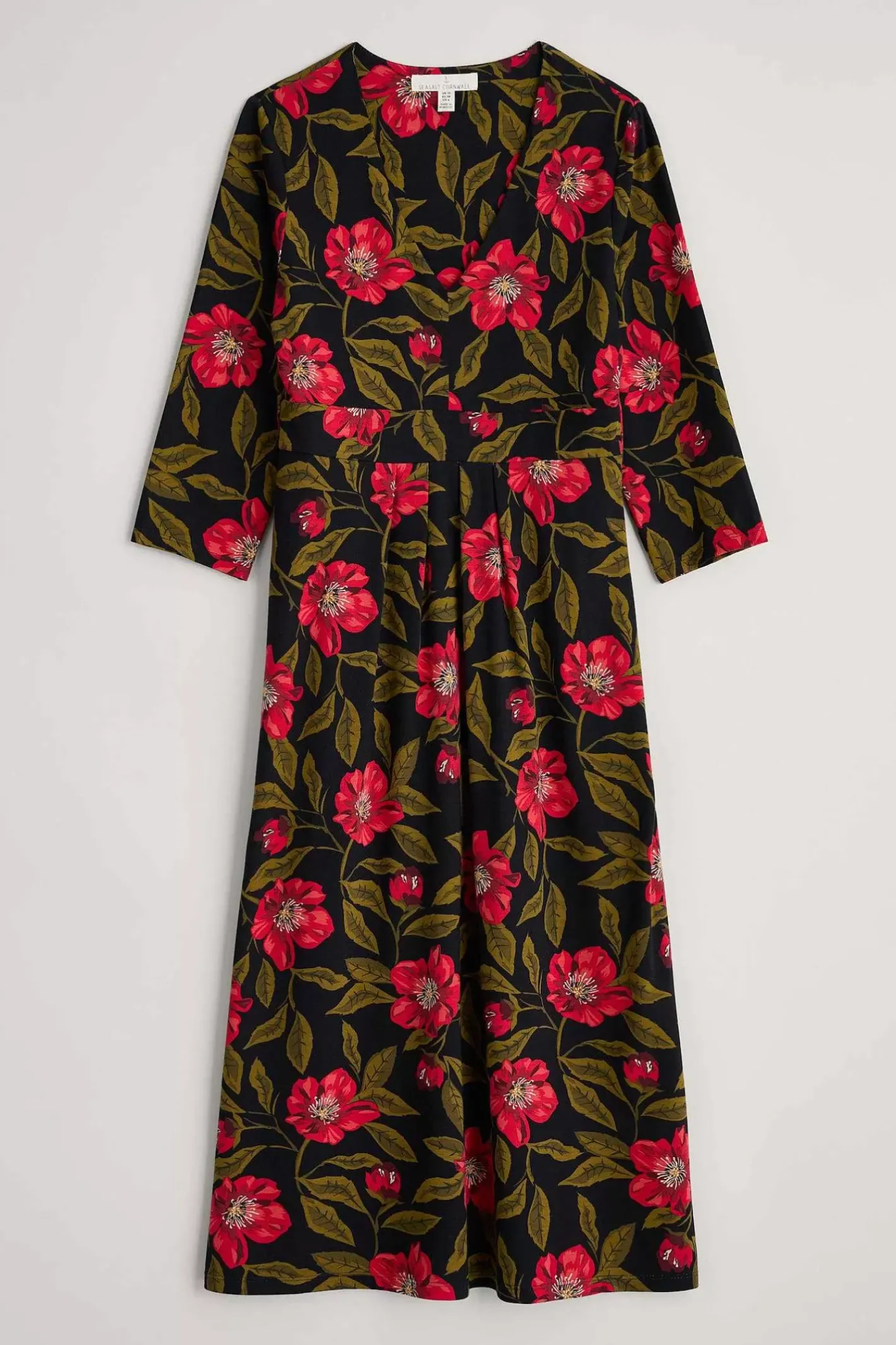 Women Seasalt Cornwall Flower Bud Jersey V- Neck Midi Dress