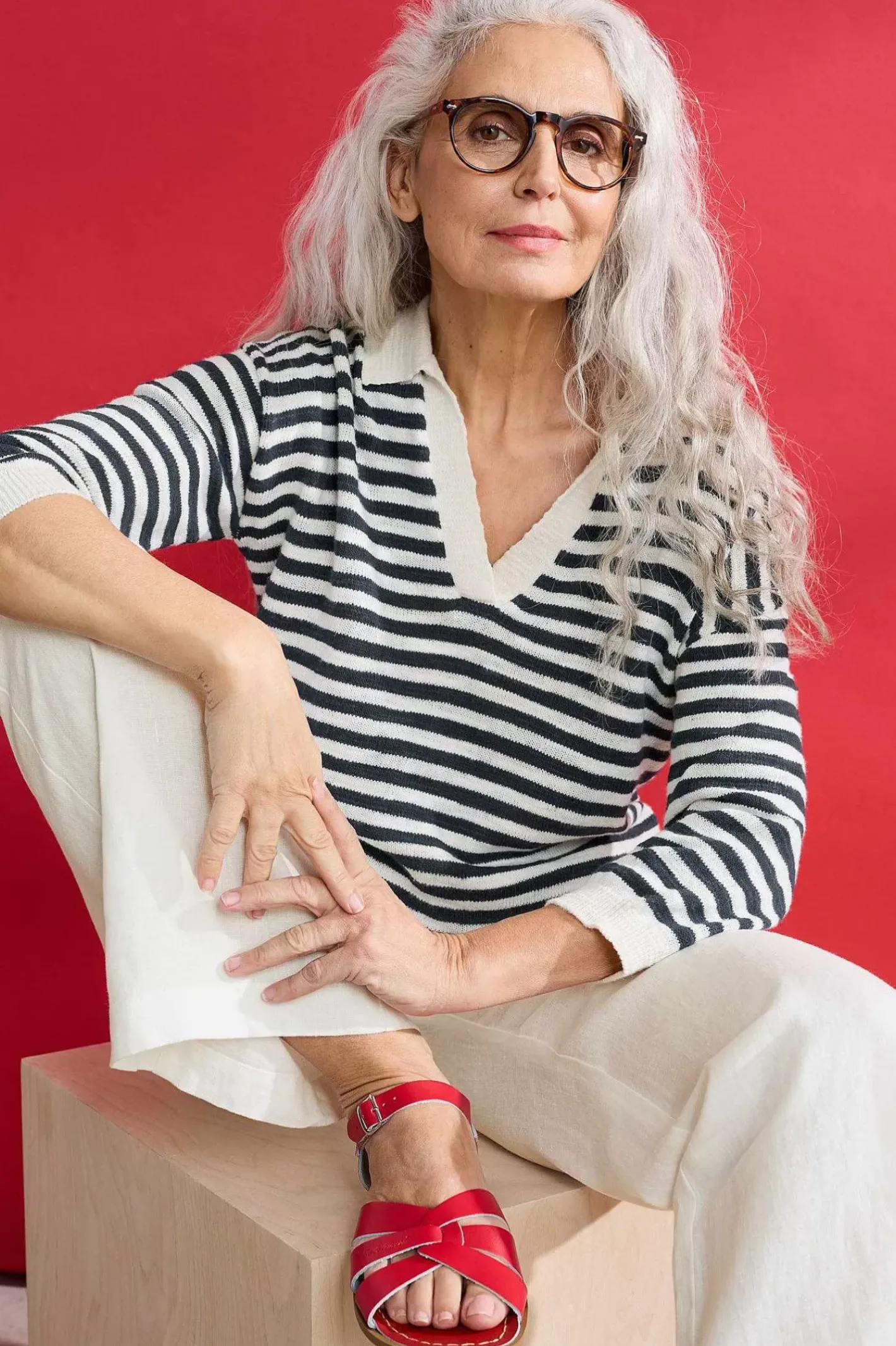A Light And Airy Jumper In A Breathable Organic Cotton And Linen Blend. We’Ve Given The Gwynver A Relaxed Fit With A Dropped Shoulder And Three-Quarter Length Sleeves. A Collar And Deep V-Neck Give It A Refined Yet Casual Feel That’S Perfect Paired With Shorts Or Linen Trousers.
