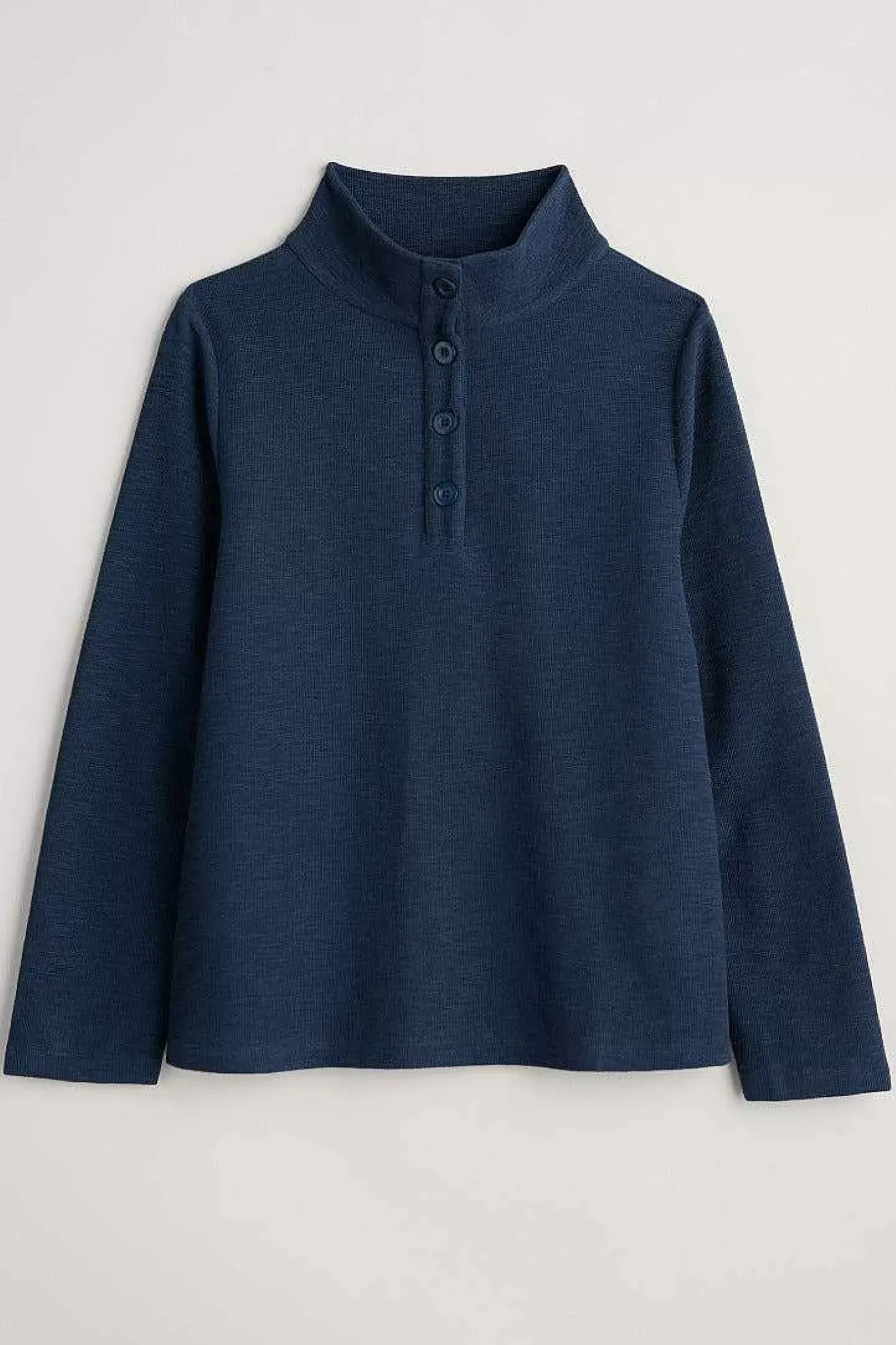 A Soft Sweatshirt Made From Loopback Jersey Cotton, With A Stand Collar That Fastens With Statement Tonal Buttons. An Easy Fit And 3/4 Sleeves Make It Perfect For Layering Through The Seasons, Whether It’s Under A Cosy Coat In Winter Or Thrown Over A Striped Top On Long Summer Evenings.