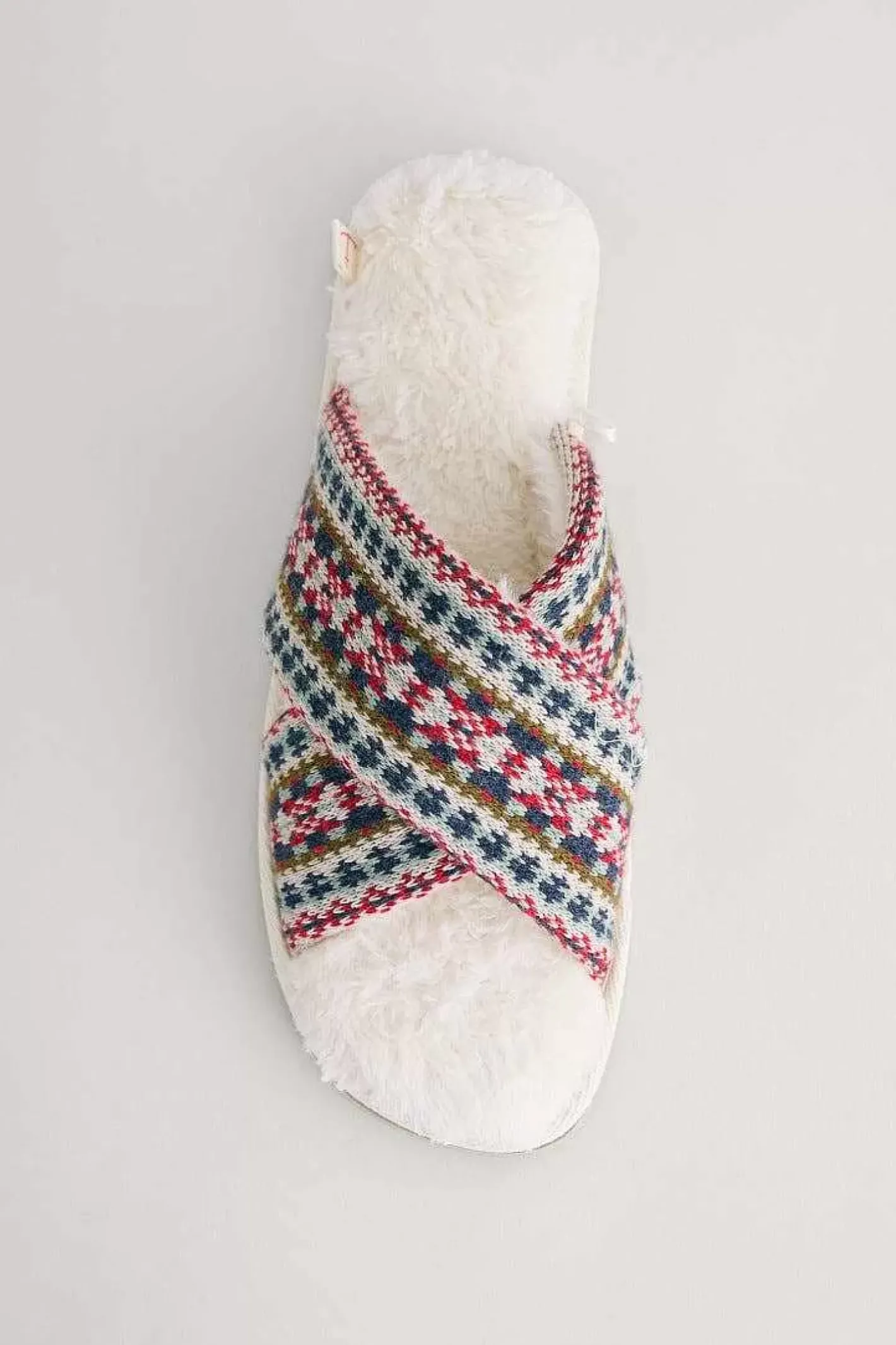 Slip-On Slippers With A Playful Knitted Pattern On The Crossover Top And Plush Lining Made From Recycled Fibres. The Flexible Sole Has A Light Grip To Keep Your Feet Cosy And Protected.
