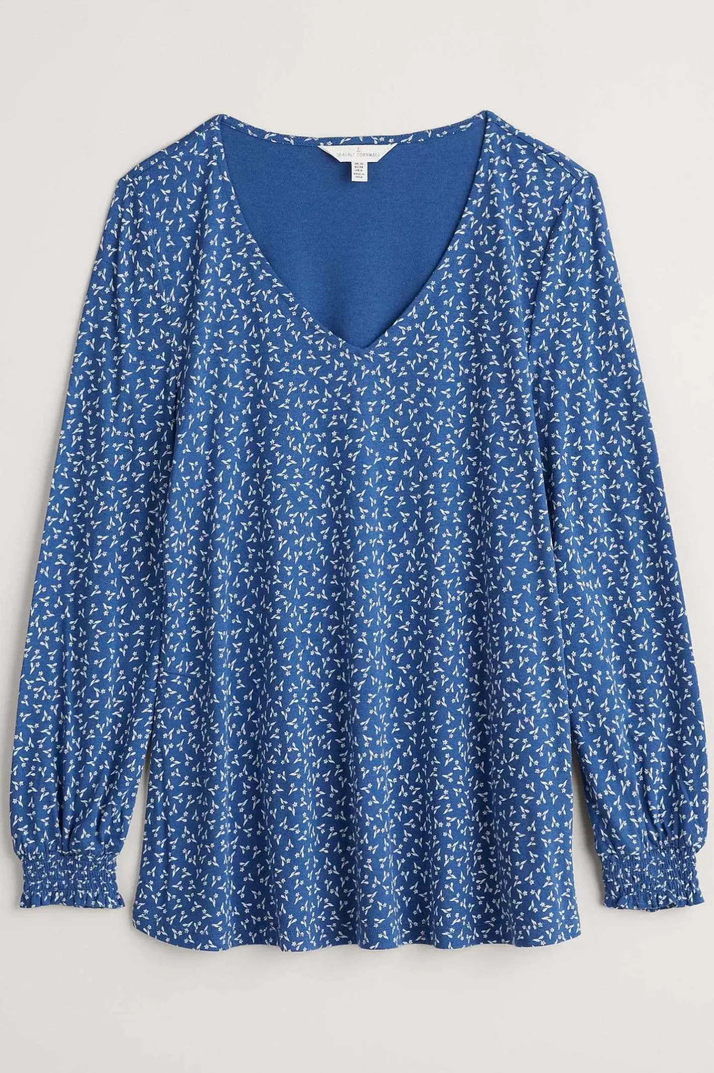 A Soft Organic Cotton Jersey Blend Lends The Flowing Cut Of Our Rosehip Top A Beautiful Weight And Drape. A Feminine V-Neck Is Complemented By Pretty Bracelet-Length Sleeves With A Smocked Cuff. Easy To Dress Up Or Down, We Love It With Jeans Or Tailored Trousers.