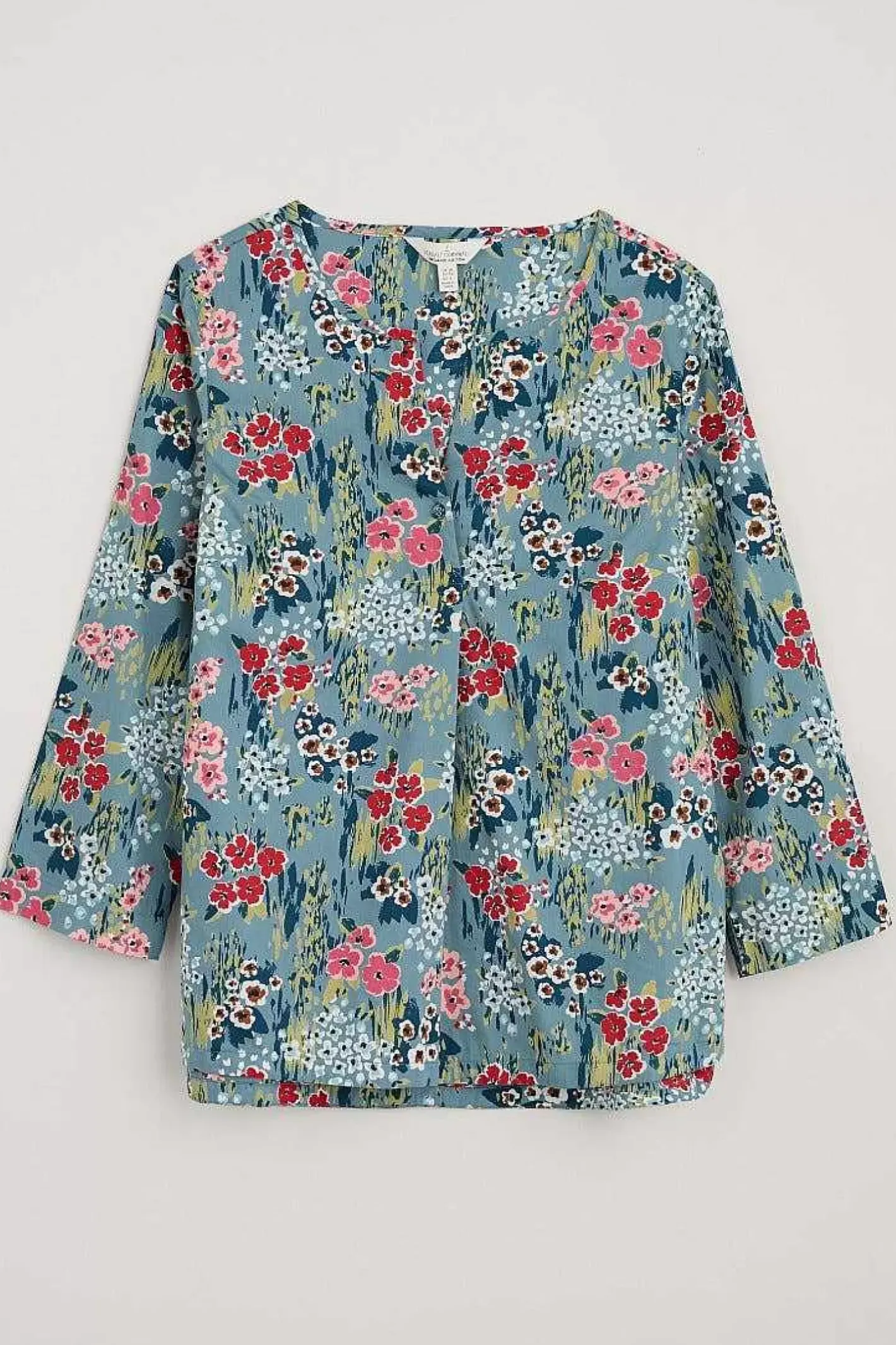 A Pretty, Relaxed Top With Feminine Details, Made From Soft And Breathable Cotton. The Notch Neck Has A Functioning Singular Button And A Subtle Crossover Design, While The Dropped Hem Has Curved Edges That Look Great Worn Loose Over Trousers. Just Add A Pair Of Easy Trainers For Effortless Everyday Style.