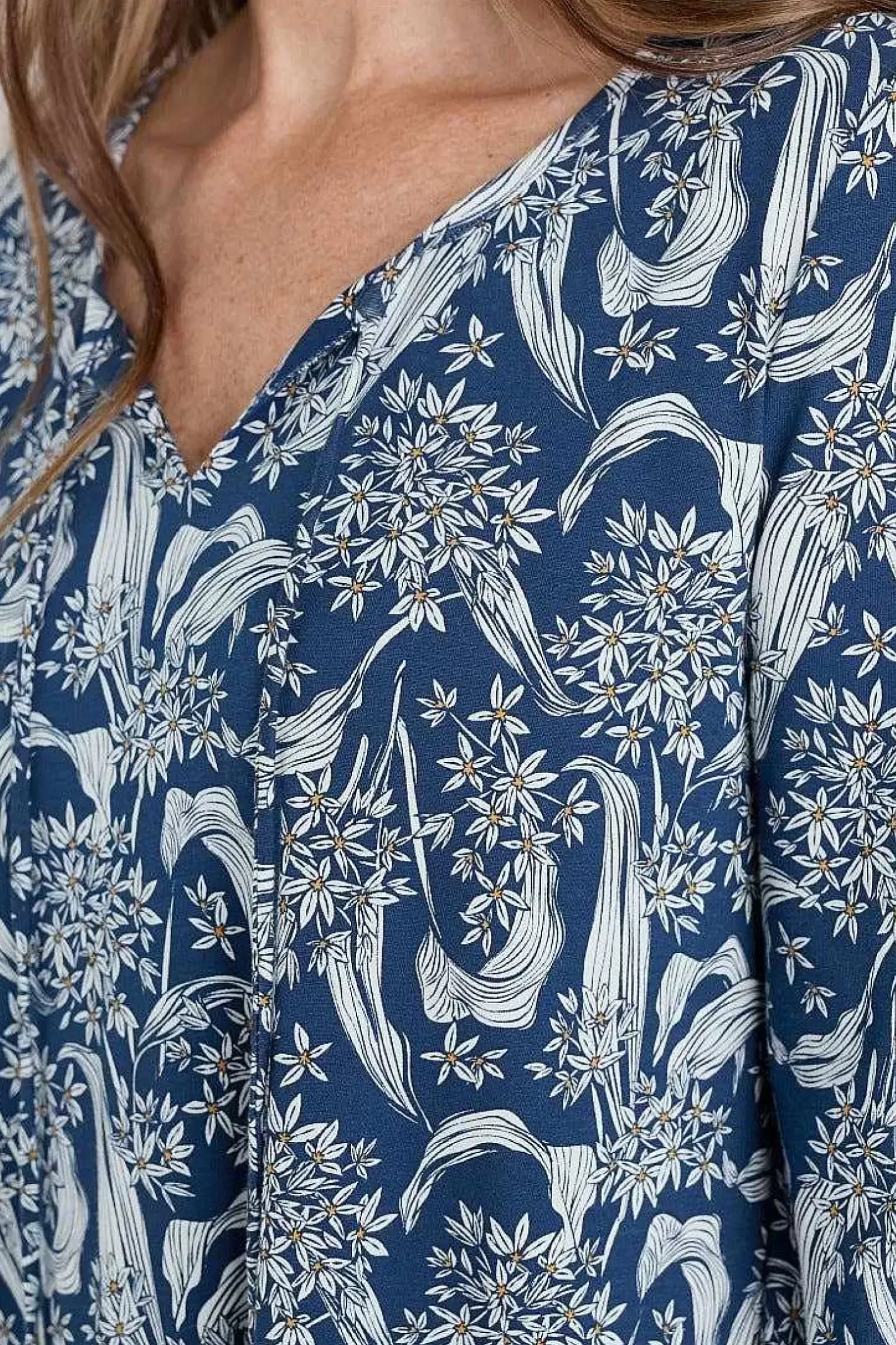 A Simple Tunic With Elevated Details And A Rich Print, In Soft And Easy Organic Cotton Jersey. The Notch Neckline Has A Tie Detail And The Dropped Sleeves Have A Subtle Blouson Shape. Shirred Poet Cuffs Are The Final, Elegant Touch. Perfect For Pairing With Narrow Trousers.