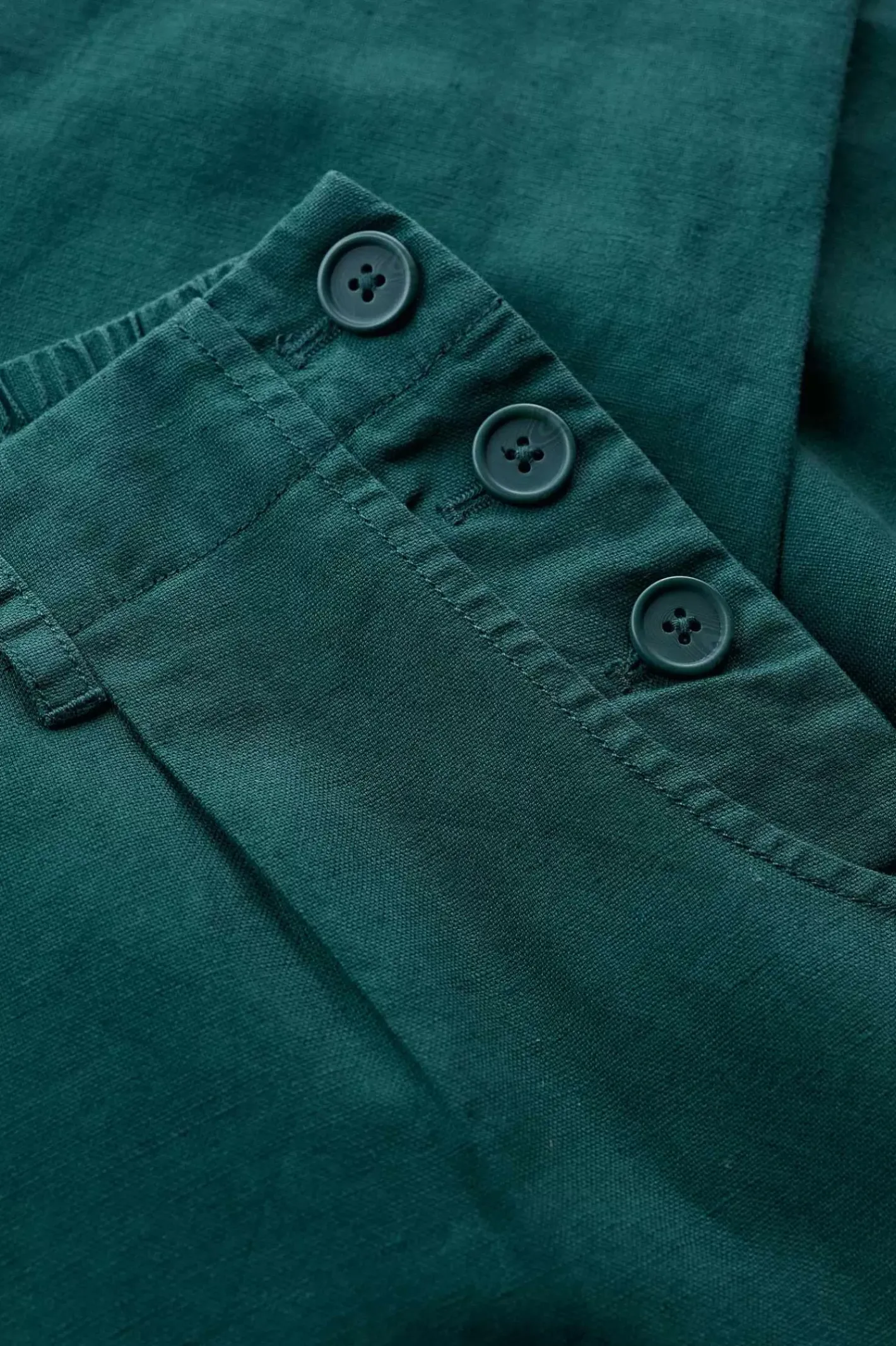 Add A Dash Of Nautical Style To Your Wardrobe With Our Nanterrow Trousers. They Have A Flattering, Relaxed Tapered Shape With Functioning Buttons On One Side. Garment-Dyed For A Rich, Deep Hue, These Versatile 7/8 Length, Flat-Fronted Trousers Look Equally Good With Breton Stripes Or One Of Our Unique Prints. They Sit Just Below The Natural Waist And We’Ve Given Them An Elasticated Back Waist For An Extra Comfy Fit. Two Handy Side Pockets And Two Back Pockets Add The Finishing Touches. Perfect With A Pair Of Colourful Flats Or Trainers For A More Casual Look.