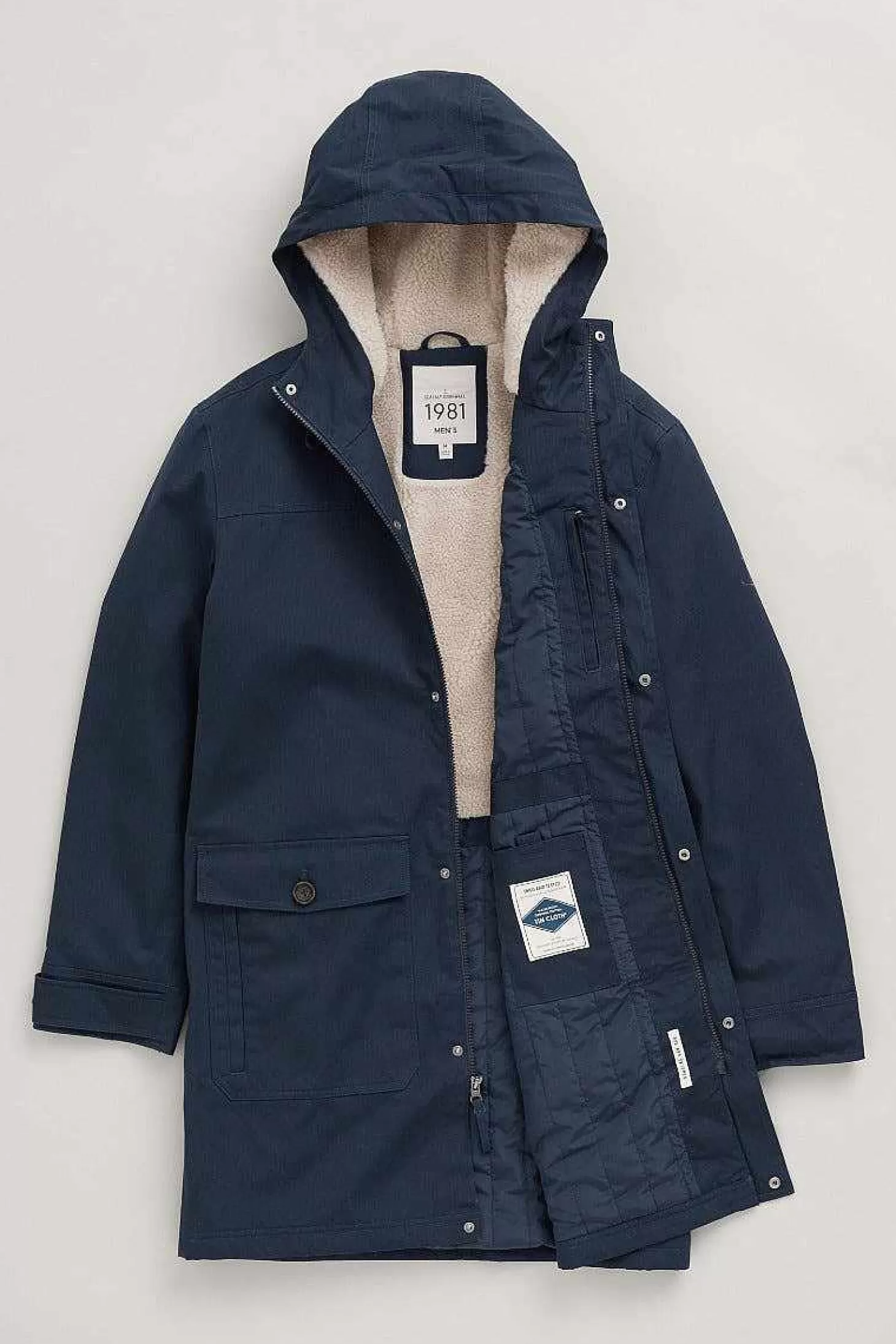 A Hardy, Longer Length Raincoat, Designed To Withstand The Wildest Cornish Weather. Made With Our Seasalt Tin Cloth® Organic Cotton Outer With A High-Performance 5000Mm Waterproofing Treatment. The Tidesman Is Lined With A Lightly Quilted Recycled Polyester, With A Warm Fleece Lining Across The Upper Back. Use The Drawcord Adjusters On The Hood To Keep Out The Rain And The Extra Side Entry Opening On The Front Pockets To Warm Your Hands.