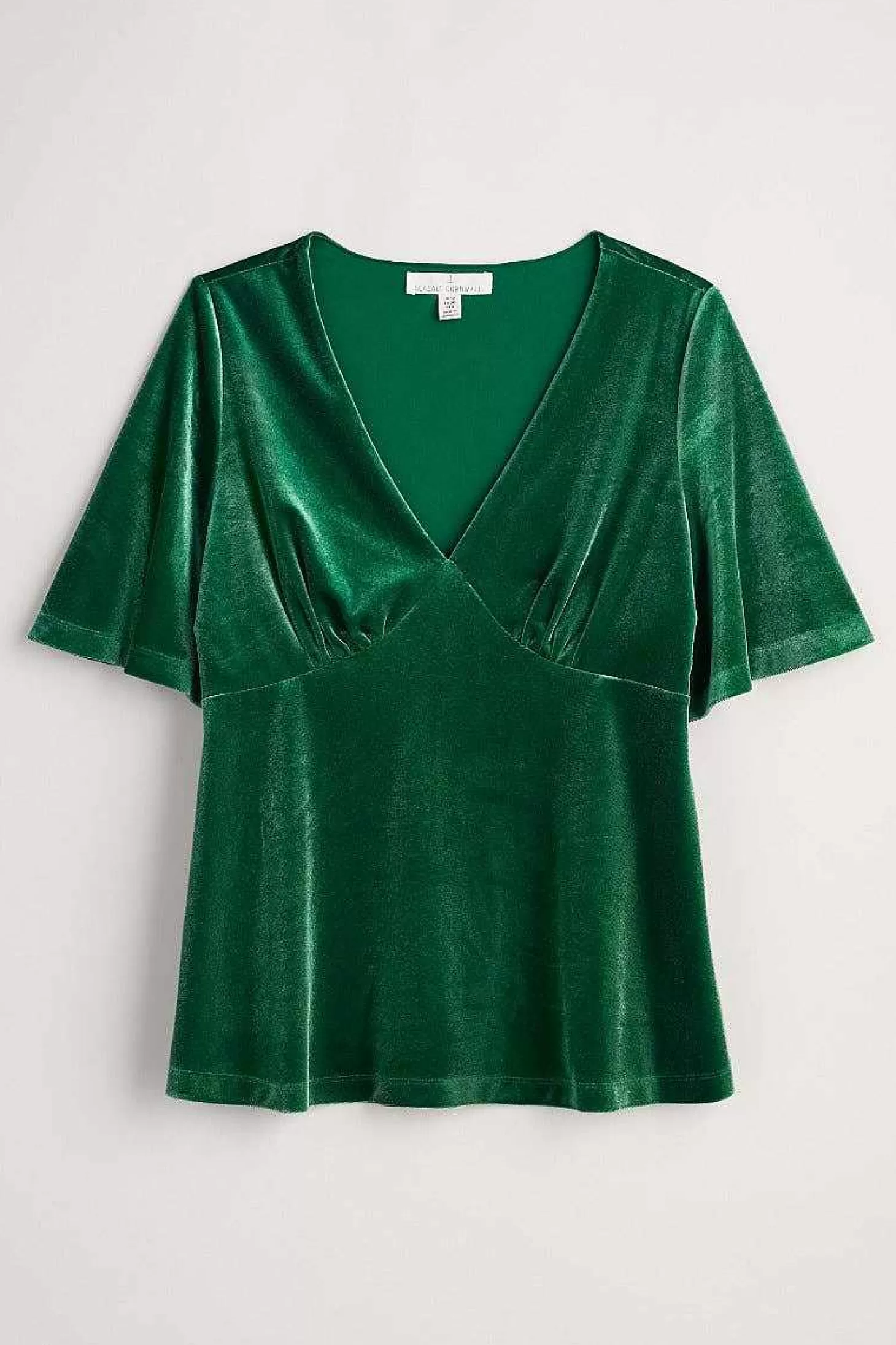 A Luxurious V-Neck Velvet Top With A Vintage-Inspired Shape, With A Fitted Bust And A Skimming Bodice. A Touch Of Stretc…