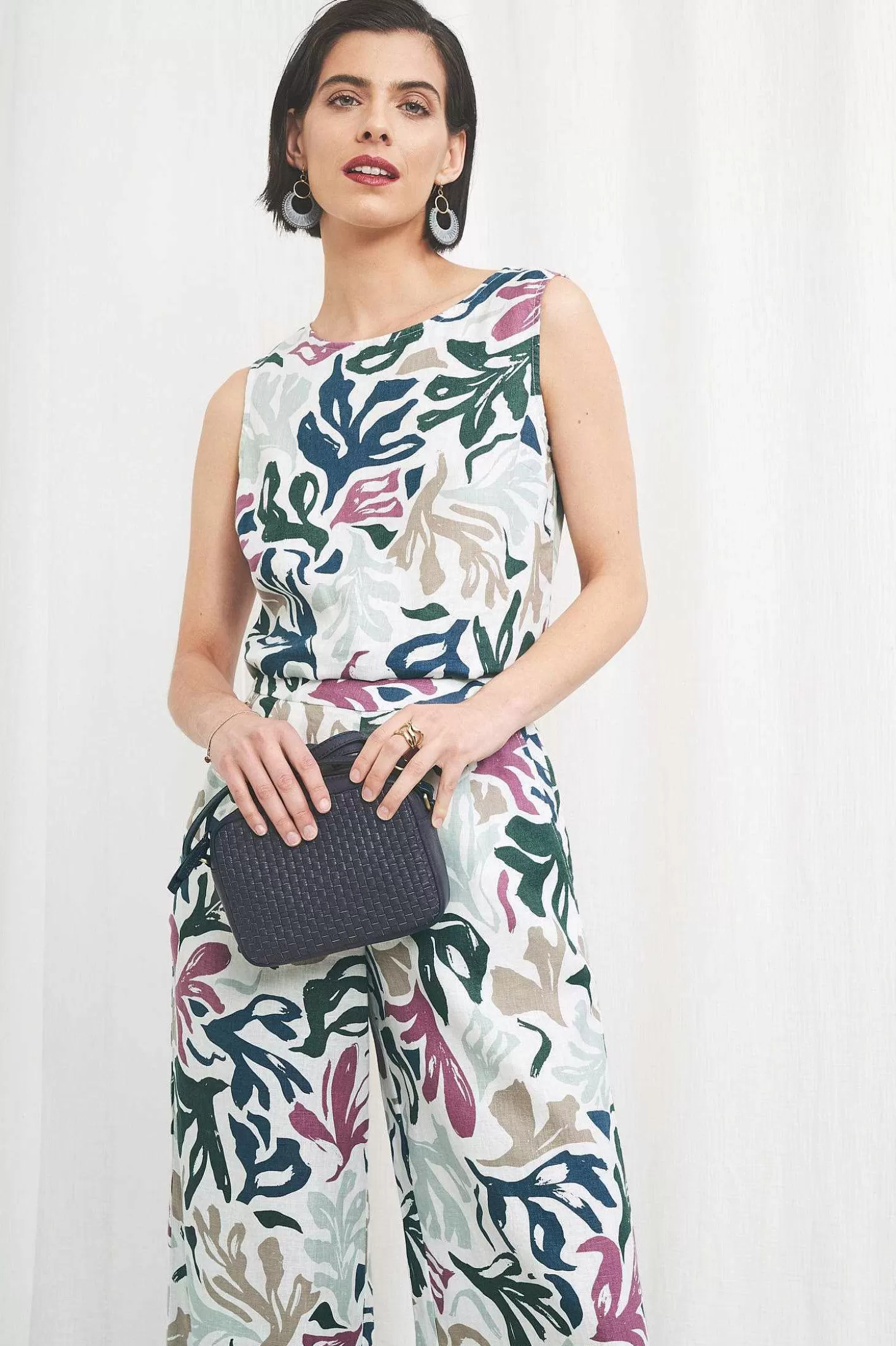 The Sleeveless Colour Study Top Is Made From A Soft And Breathable Linen In A Pretty Leafy Print. Offering A Simple Relaxed Fit With A Flattering Boat Neck, It Can Be Worn With Or Without The Coordinating Peaceful Haven Culottes. We Love How This Two-Piece Outfit Offers So Many Possible Wardrobe Combinations. Worn Together, The Top And Culottes Make A Statement Ensemble For Summer Events, As A Modern Alternative To A Print Dress. Equally The Culottes Can Be Worn With Our Organic Cotton T-Shirts And The Top Works Really Well With Our Plain-Coloured Crops And Culottes.