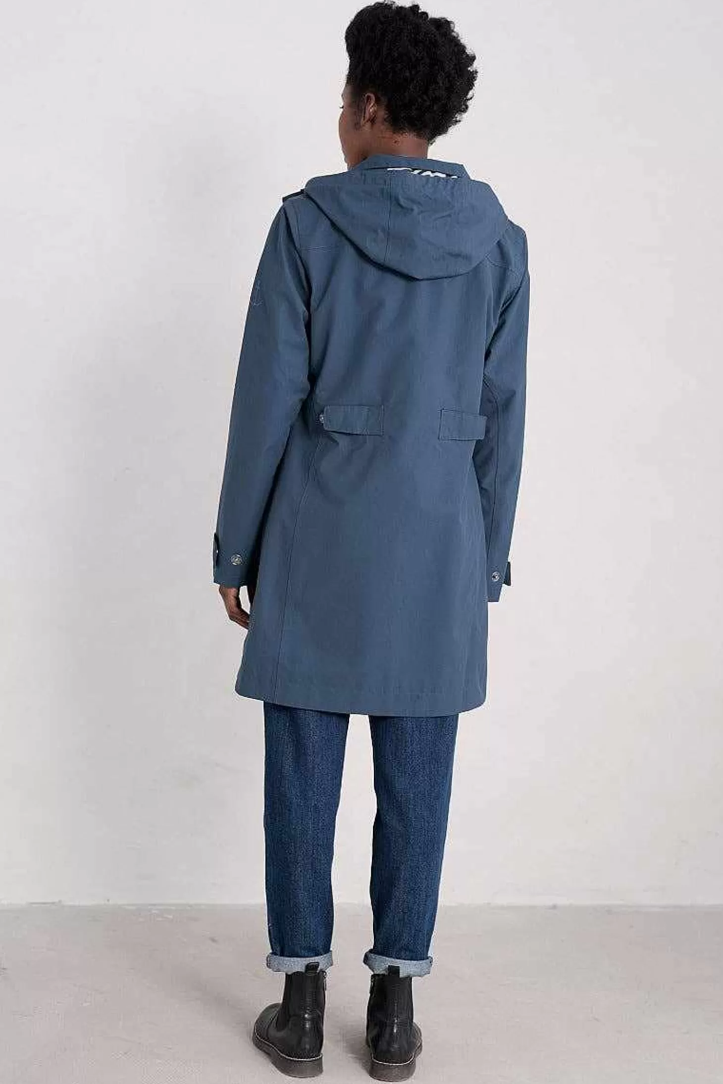 Our Streamlined Coverack Coat Looks Just As Good On The Coast As It Does In The City. Its Simple Shape Is Gently Fitted, With Tabs With Poppers So You Can Adjust The Sleeves And Cinch In The Waist. Made With An Organic Cotton Rich Tin Cloth® Outer And Lined In Cotton Poplin, With Generous Hood Lined In Soft Striped Jersey. The Sleeves Are Lined In Polyester, So It’s Easy To Slip On And Off.